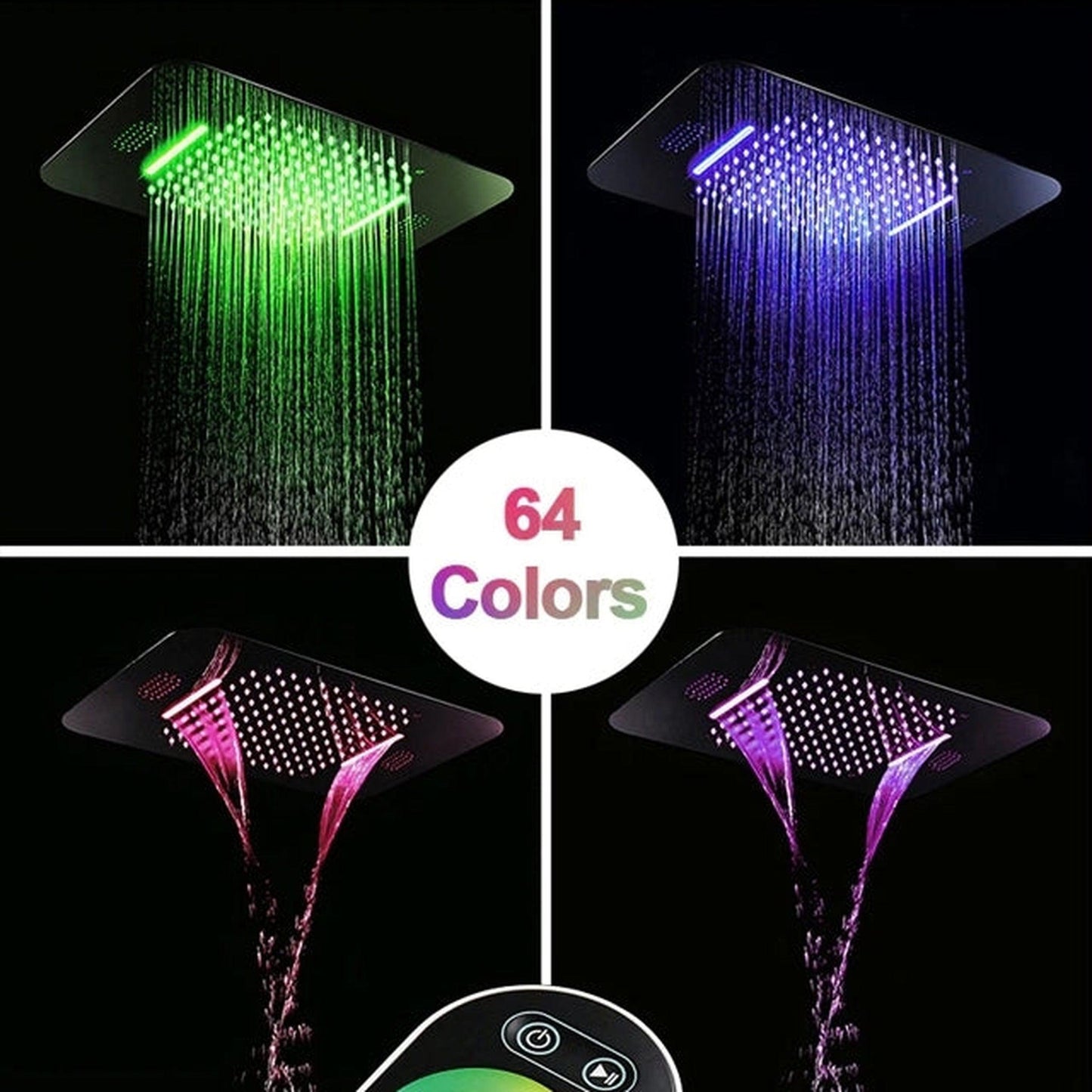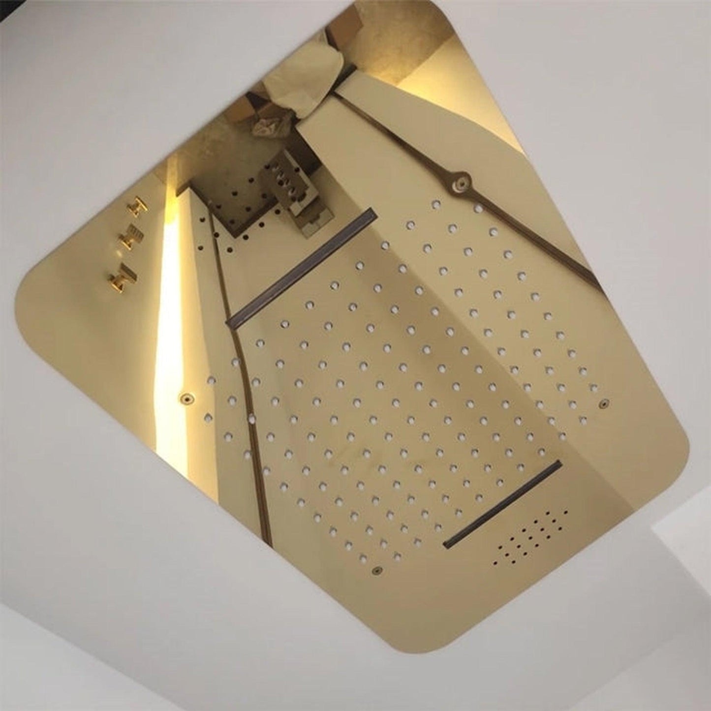 Fontana Foligno Gold Recessed Ceiling Mounted Thermostatic LED Remote Controlled Rainfall Waterfall Shower System With 6-Jet Body Sprays and Hand Shower