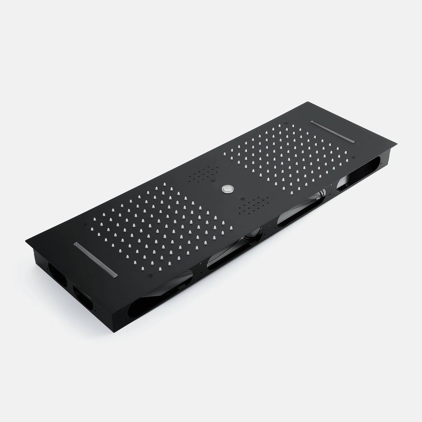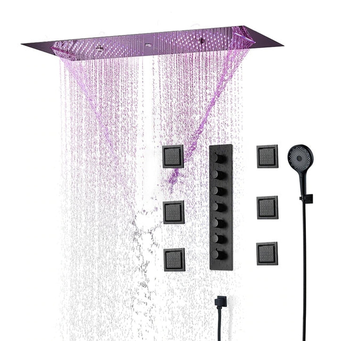Monza Luxurious Touch Panel Controlled Matte Black Thermostatic Recessed Ceiling Mount LED Musical Rainfall Shower System with Hand Shower and Jetted Body Sprays
