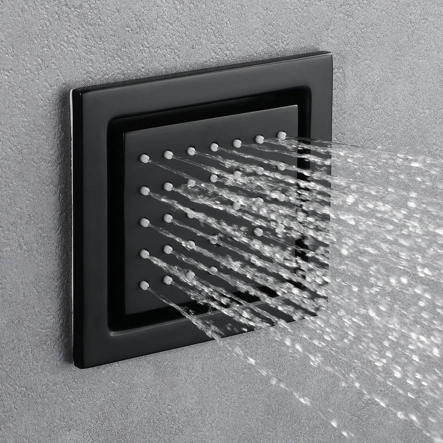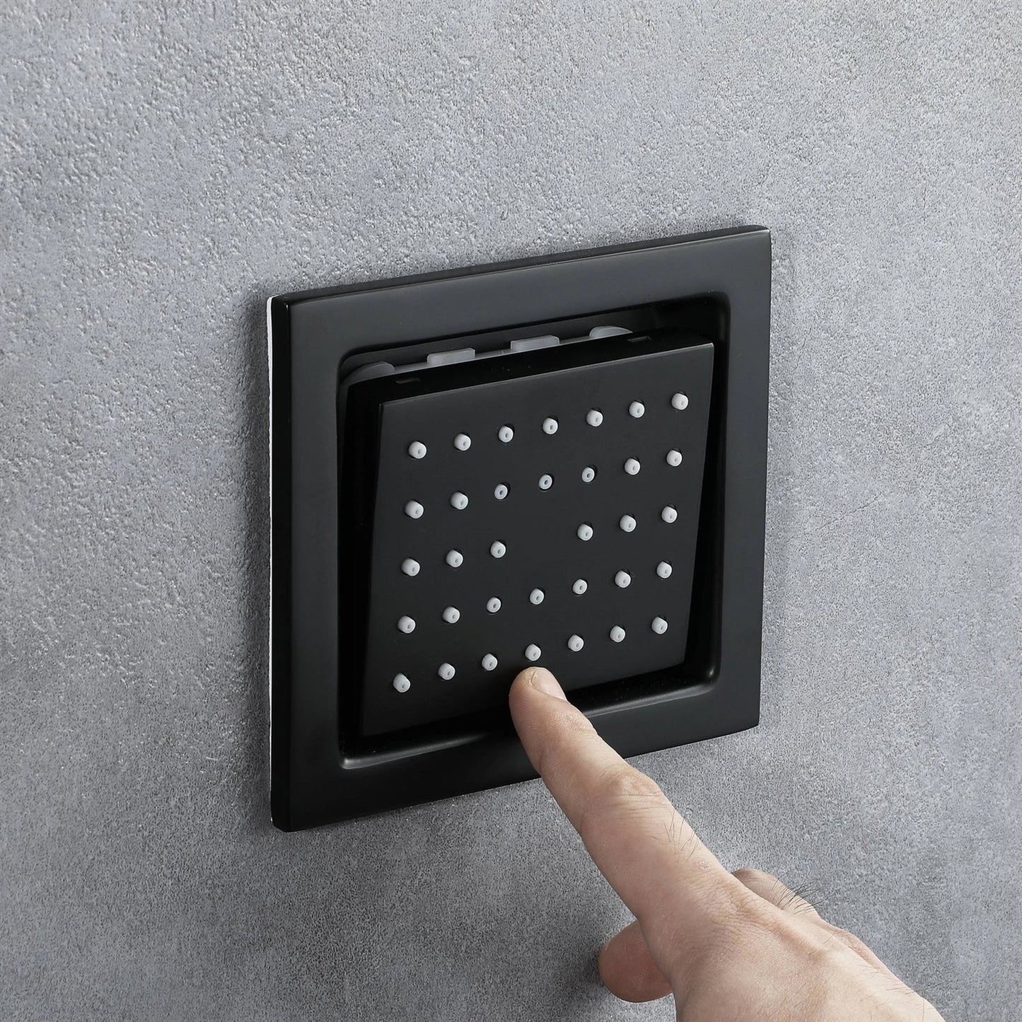 Uplift your energy by taking an good shower with the black matte look plus the 3 jetted sprays of the Ravenna Large Phone Controlled Matte Black Thermostatic Recessed Ceiling Mount Musical LED Mist Waterfall Rainfall Shower System with Hand Shower, Jetted Body Sprays. It features 3 jetted sprays, sound system, built-in wifi and 64 adjustable color temperature. It is leak free and easy to install. The design was inspired by the FontanaShowers. Be sure, when it comes to new shower system, FontanaShowers is offering shape, finish and styles you're looking for.
