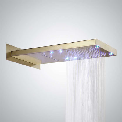 Fontana Rectangular Wall Mount Dual Control LED Brushed Gold Wall Mounted Shower Head