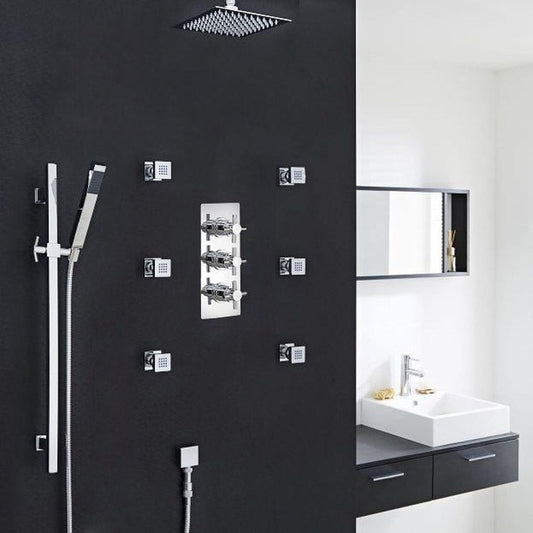 Fontana Reno 10" Chrome Square Ceiling Mounted Rainfall Shower System With 6-Body Massage Jets and Hand Shower
