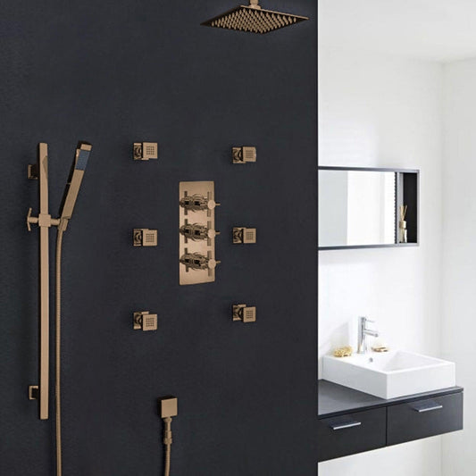 Fontana Reno 12" Oil Rubbed Bronze Square Ceiling Mounted Rainfall Shower System With 6-Body Massage Jets and Hand Shower