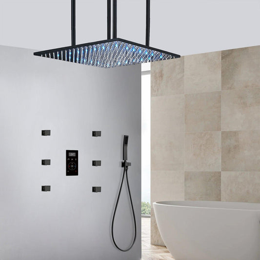 Fontana Reno Matte Black Ceiling Mounted 3-Way Digital Shower System With 6-Jet Body Sprays and Hand Shower