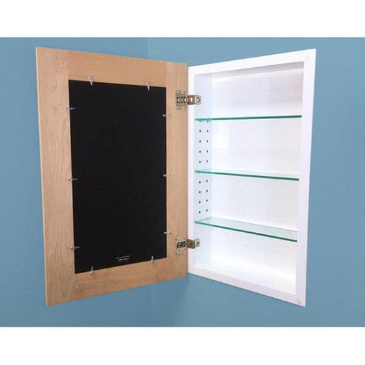 The Extra Large Unfinished Shaker Style Concealed Cabinet features our beautiful Shaker Style picture frame door made from unfinished alder wood that you can paint or stain yourself to match your decor perfectly! Measures 24" H x 14" W x 3.75" D and holds up to 11" x 20" artwork from your personal collection.