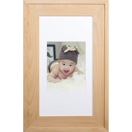 Fox Hollow Furnishings 14" x 24" Unfinished Extra Large Standard 4" Depth Natural Interior Recessed Picture Frame Medicine Cabinet With Mirror and White Matting