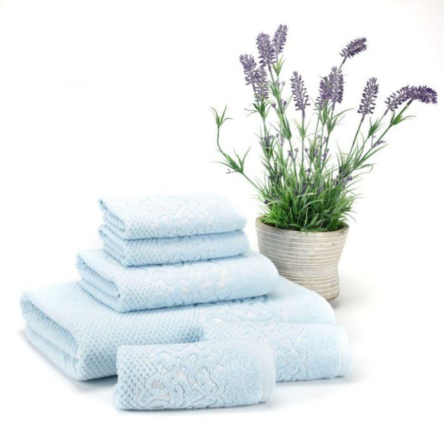 Our premium set imported from Turkey includes a bath towel, a hand towel, and four washcloths. It provides everything you need to quickly dry yourself up right after a refreshing shower time.