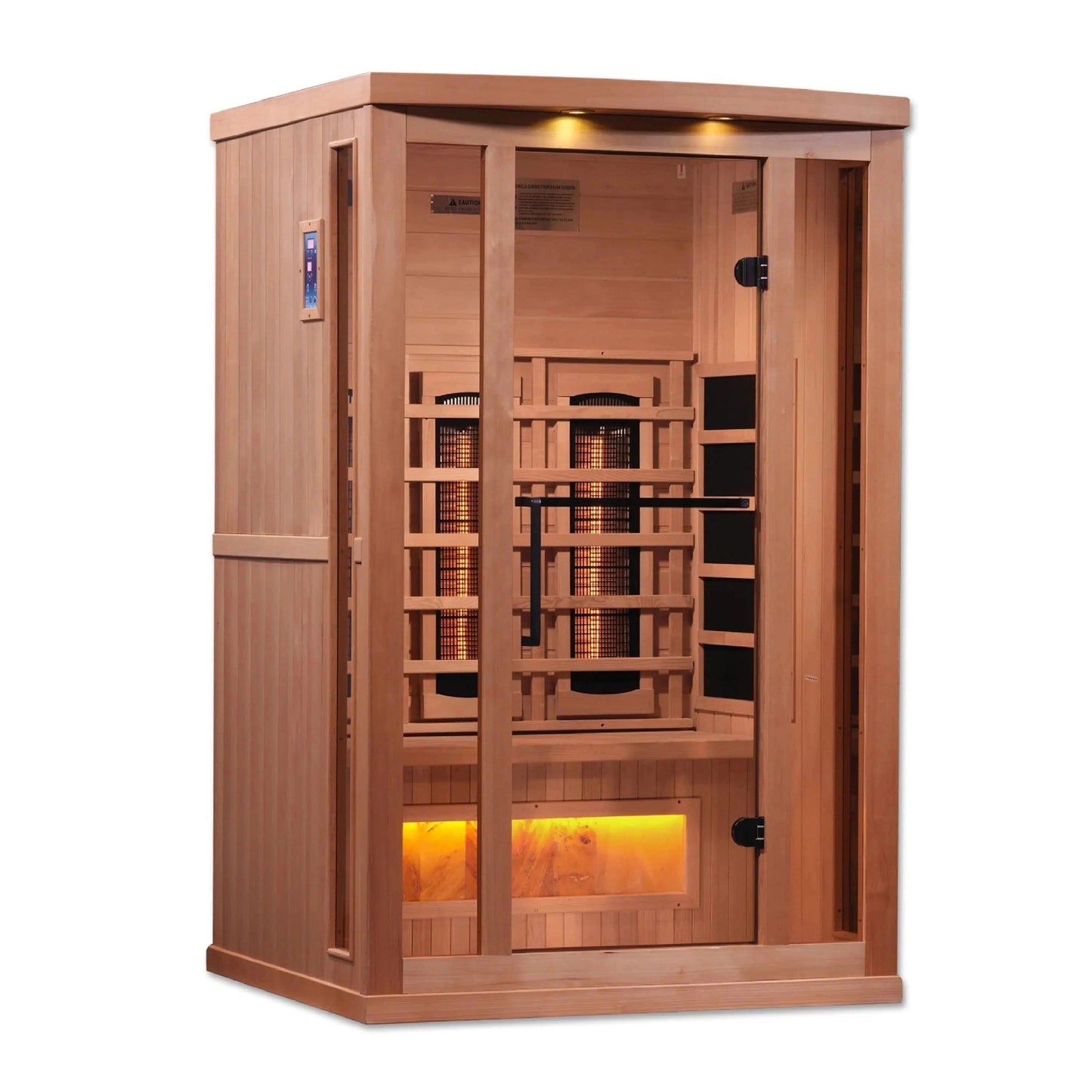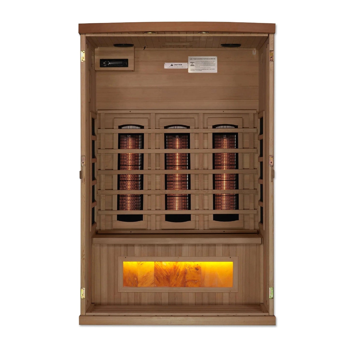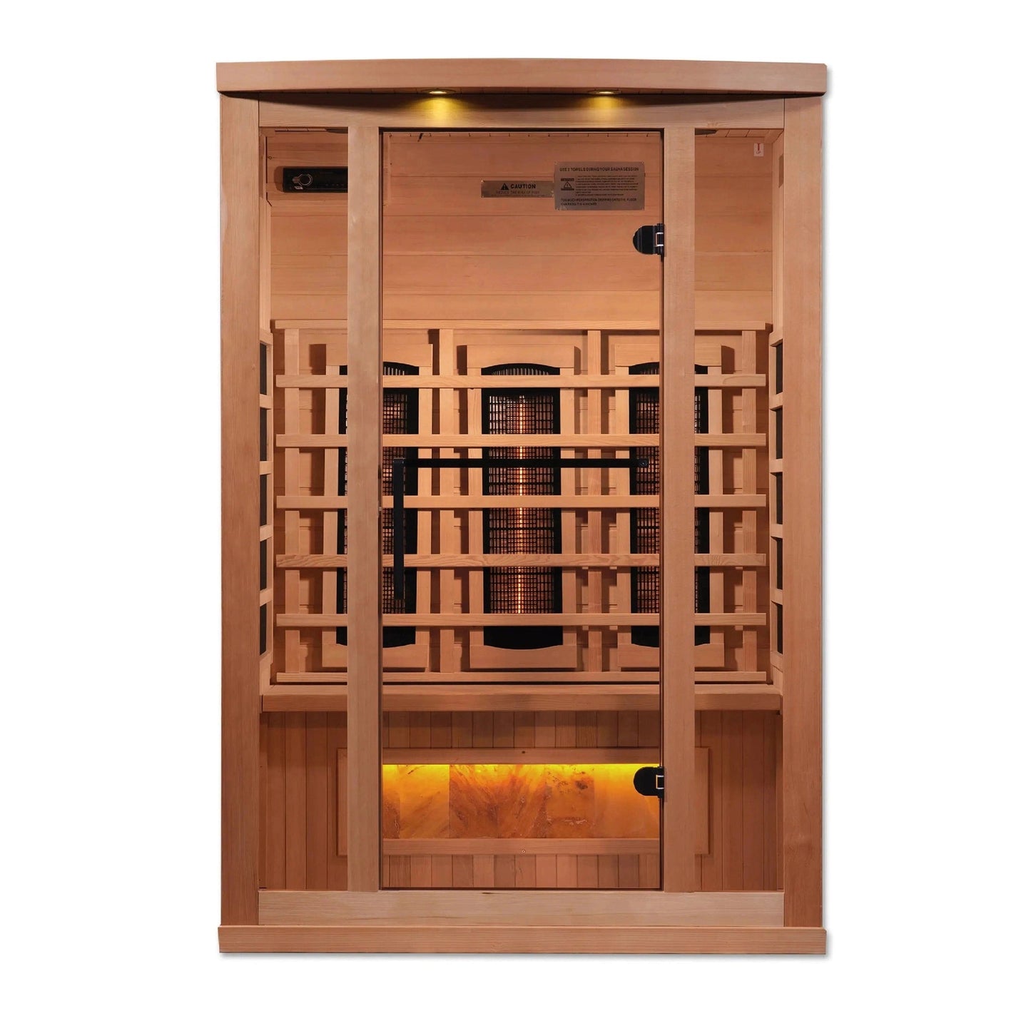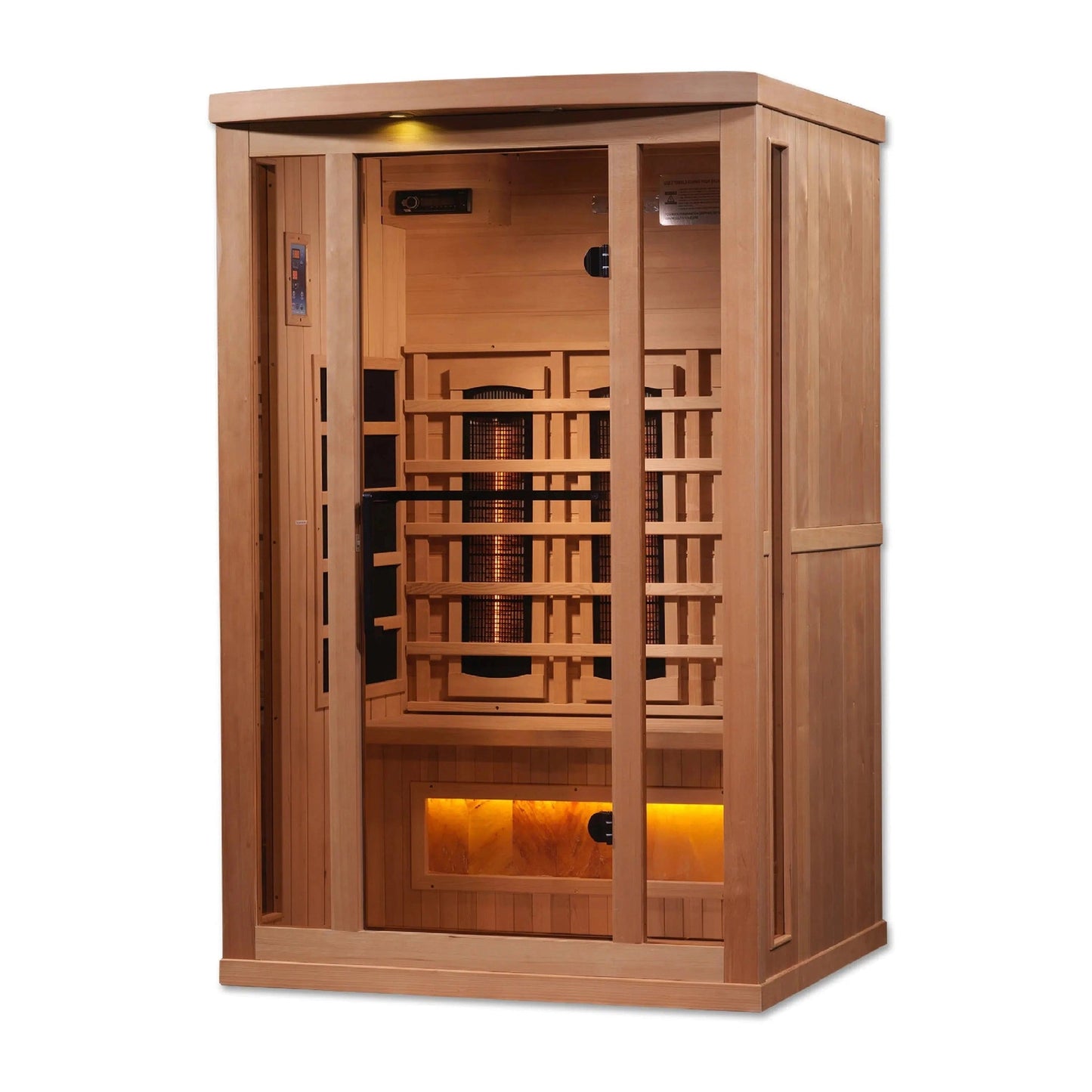 Golden Designs 2-Person Full Spectrum PureTech Near Zero EMF FAR Infrared Carbon Sauna With Himalayan Salt Bar in Canadian Hemlock