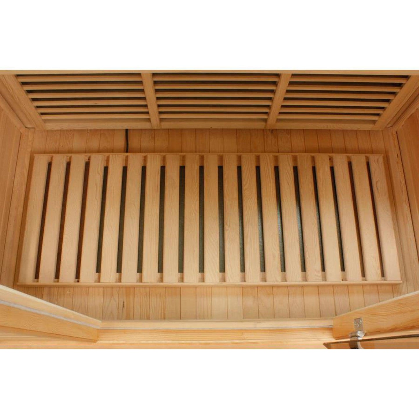 Sauna Maintenance Since infrared saunas do not require hot rocks, water, or steam to operate, they require very little maintenance. You can simply wipe it down with water and a soft clean cloth. Do not use any cleaning chemicals as they can be absorbed into the wood and be released into your sauna during use. DISCLAIMER The infrared rays emitted by your sauna are reported to offer a wide range of possible therapeutic benefits based on research completed over the last 25 years from all around the world. These benefits are presented for reference purposes only and no implication of infrared saunas creating a cure for or treating any disease is implied nor should it be inferred. If you have a health condition, are taking prescription drugs, or have acute joint injuries, please consult your physician before starting infrared therapy. Persons with surgical implants (metal pins and rods, artificial joints, silicone, or other types of surgical implants) typically do not experience any adverse effects, but should also consult their physician or surgeon before starting infrared therapy. CAUTION: Exit sauna immediately if you feel dizzy, sleepy, or any discomfort. |