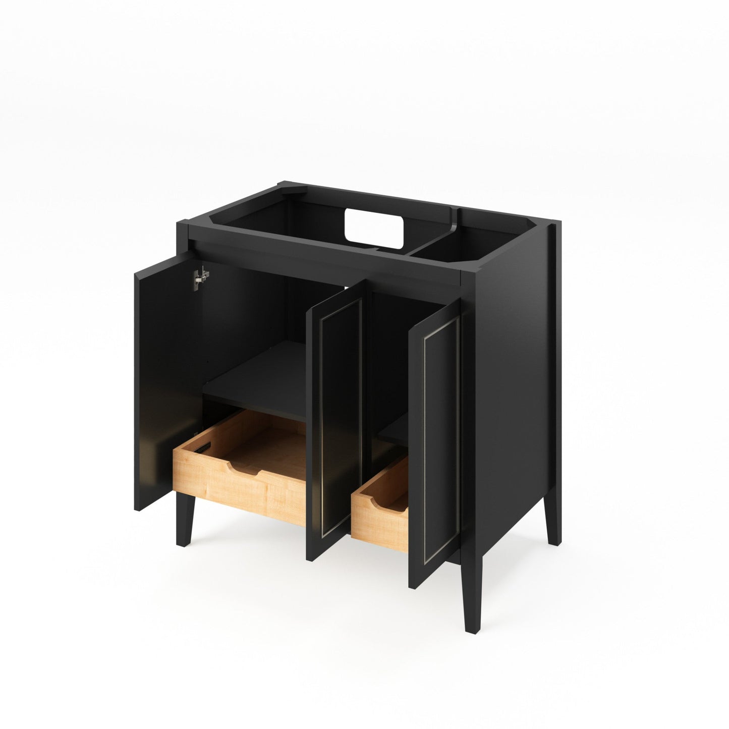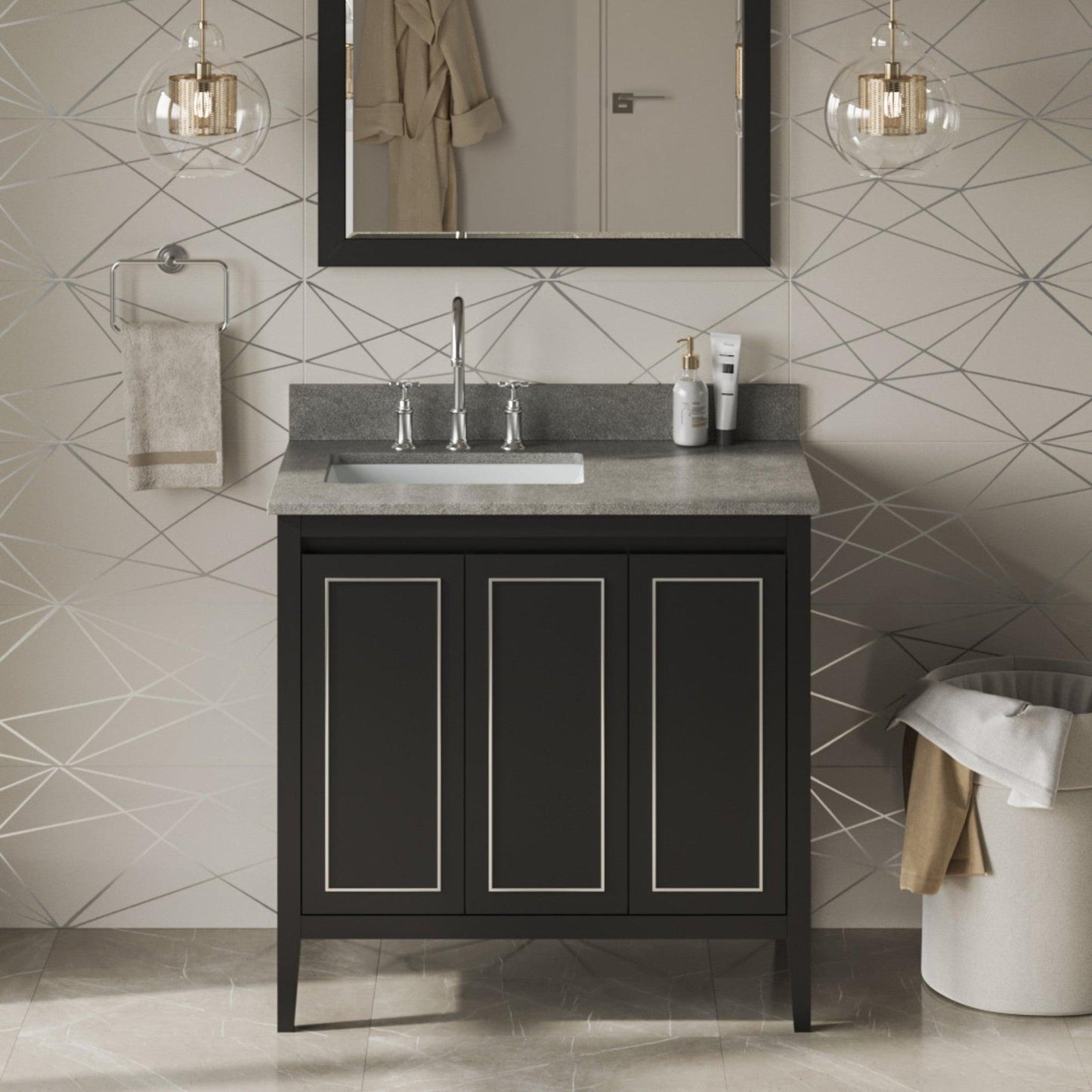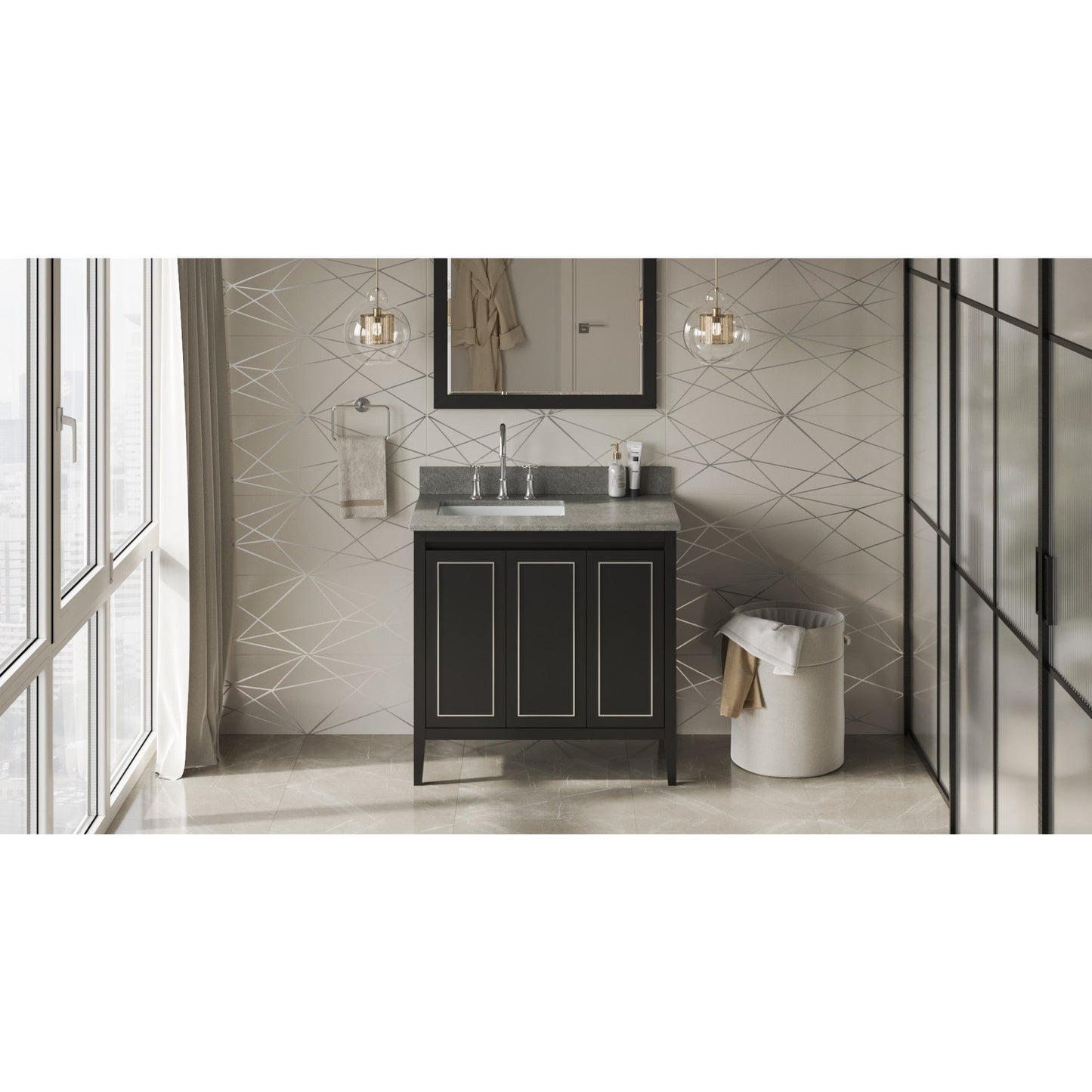 Hardware Resources Jeffrey Alexander Percival 36" Black Freestanding Vanity With Left Offset, Steel Gray Cultured Marble Vanity Top, Backsplash and Rectangle Undermount Sink
