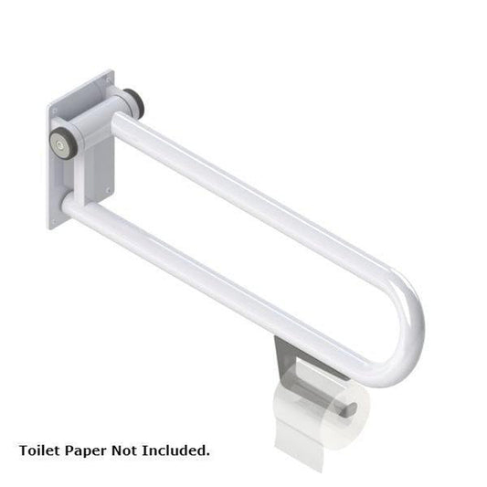 The Toilet Roll Holder is an add-on accessory for the P.T. Rail. It allows you to move your roll of toilet paper right onto the rail, reducing awkward reaching and eliminating the need for a conventional toilet roll holder.