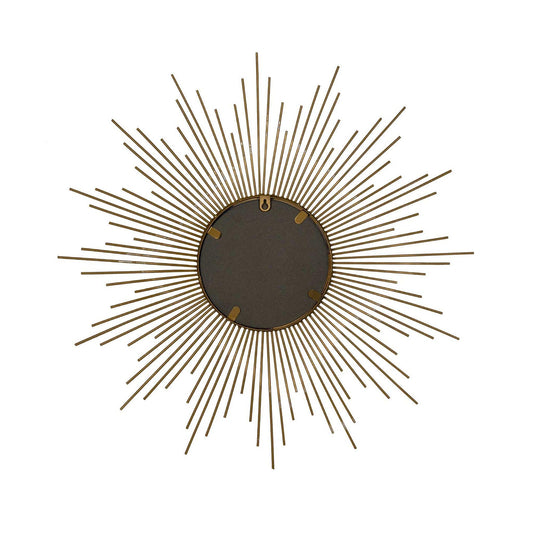Highlight the contemporary design of your home with this handcrafted decorative wall mirror. It features a large center mirror, bordered by a sun-inspired frame. The metal frame is a sight to behold, thanks to its luxurious color and shiny finish.