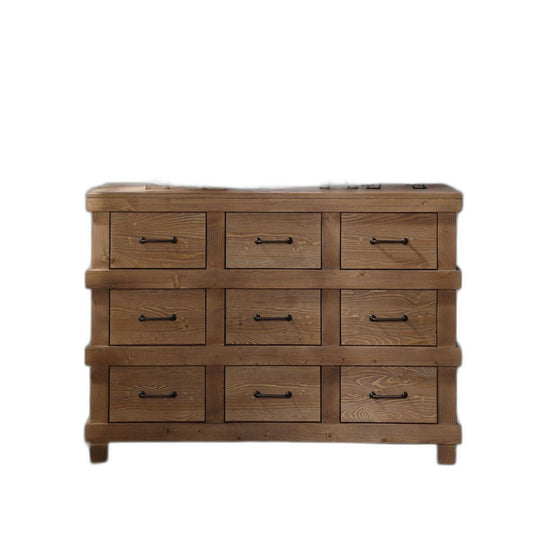Transform your home with this spectacular dresser. this classic alluring dresser will surely transform the hollow of your loving bedroom into a nice place. the sophisticated design offers a perfect accent and to the existing decor in any living space. it is contracted with solid pine wood and antique oak finish that makes your bedroom correspond to that of a king. the craftsmanship that was employed brings this dresser out as a fine and uniquely designed furniture for the bedroom. it includes nine drawers, metal side glides and felt lined drawer with metal. carry home with you this dreamy and elegant collection to add beauty and style to your bedroom.