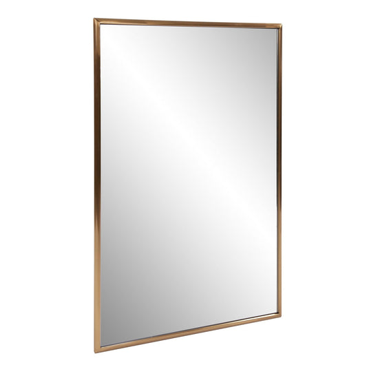 Inspired by a minimalist industrial aesthethic, the Antiqued Brushed Brass Rectangular Wall Mirror is a great focal point for your bathroom and is designed to fit perfectly over your vanity. Add depth and reflective beauty to your home with its clean and simplistic lines, this mirror can can either vertical or horizontal and would be a great choice for most any room. A well made, sturdy stainless steel, great wall mirror that is updated, classic, and not fussy. 36" x 24" x 1