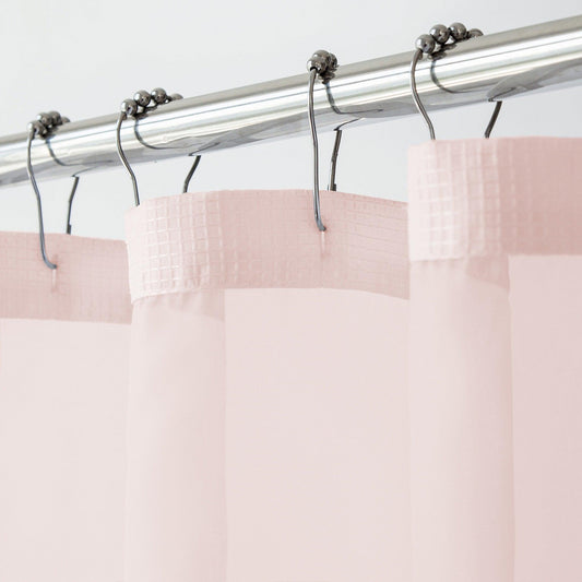 Standing out in fashion and function, this Pale Blush Pink Sheer and Grid Shower Curtain and Liner Set will be an alluring piece of decorative accent for your bathroom space. The delicate pale pink tone of the curtain is calming to the eyes and gives an illusion of a larger shower area while inducing a sense of love and romance in the air. This easy-to-clean cotton shower curtain comes with a liner that keeps water in the tub rather than splashing outside the shower area while preventing mildew on the curtains. You can seamlessly attach the liner to the curtain when needed and snap it off for easy cleaning. Bring home this luxurious shower curtain and liner set to enhance the aesthetics of your contemporary bathroom space with style and grace. 70” x 72”