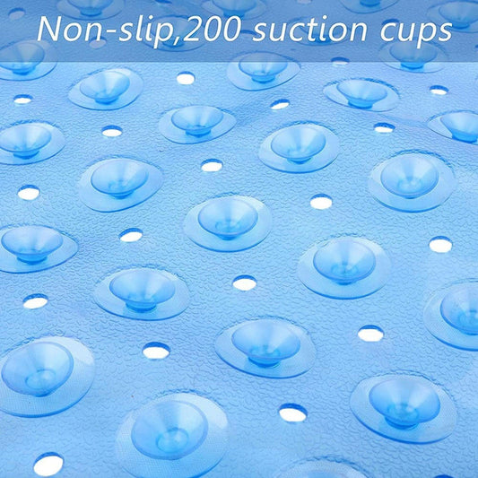 Add comfort and safety to your bath with this good looking and practical Clear Blue Oval Non Slip Bath Mat. Designed with rows of large circles and then smaller circles for drainage, this opaque blue mat is a great way to keep your tub safe. Prevent slipping and sliding in the bath with this sturdy and long lasting mat. There are 200 suction cups underneath the comfortable surface that help keep this mat in place for safer baths and showers. 16" x 40" x .1"