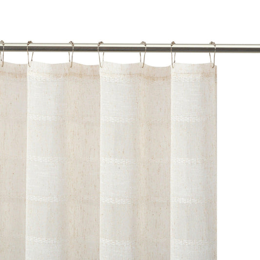 HomeRoots Cream Striped Embroidered Shower Curtain