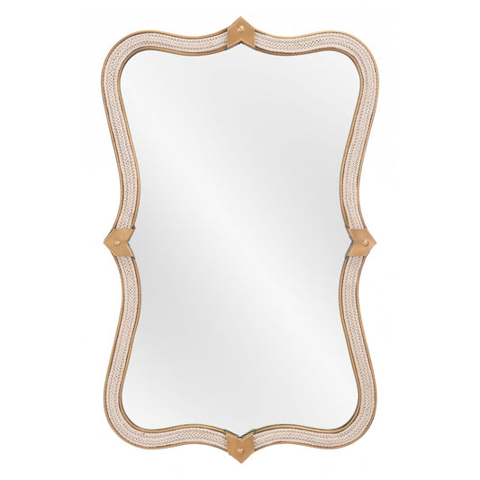 This gold beveled mirror is the perfect nod to traditional interior decor. The frame is made from stainless steel and finished to a gold finish. Around the front perimeter of the frame there is braided rope detailing with four gold clasps on the four center points. The mirror is a good size and can be hung on the wall or used as a floor mirror. The sleek and minimal design enables it to be used anywhere in your home no matter the interior style you have. There is a hardware kit included in the package to help you in installing the mirror. 31.9" H x 19.7" W x 2" D