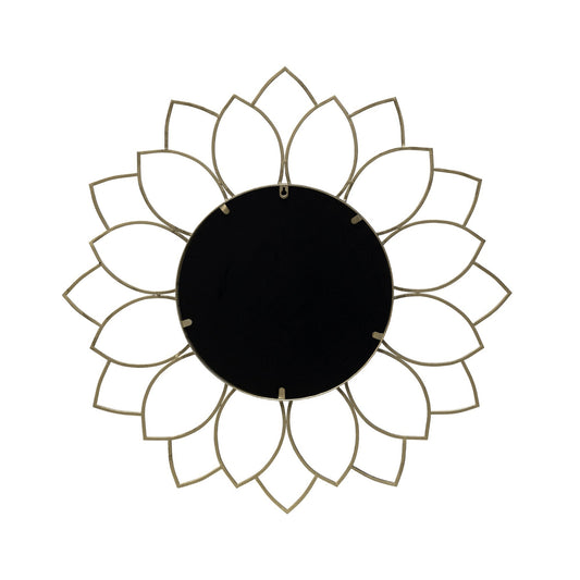 This handcrafted decorative accent shows off a round center mirror, which is adorned with a floral-themed border. The metal frame has a gold tone that stands out with an antiqued finish - giving your bare wall a textured look right away.