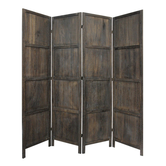 HomeRoots Modern Farmhouse Rustic Four Panel Room Divider Screen in Brown Finish