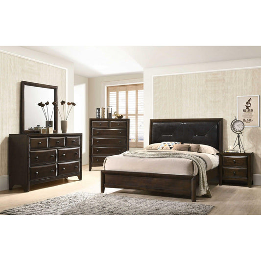 This bedroom collection is crafted with a transitional look that is an ideal addition to any bedroom. This rectangular contemporary bedroom mirror features a walnut finish frame. Add modern elegance and style to any bedroom with this unique mirror.39" X 36"