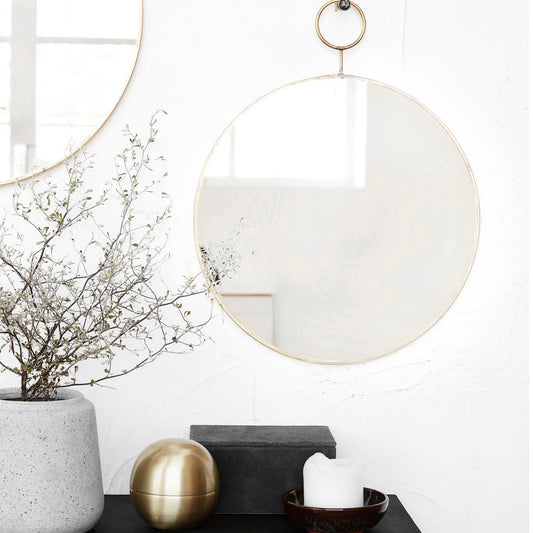 Create new dimensions in the home with a new mirror. The Loop from House Doctor is a stylish and elegant mirror that fits perfectly into the modern home. The mirror comes with a thin brass frame and is easy to hang on a nail. Use this mirror as a beautiful wall decoration in your home. The functional design makes it easy to use and move around. Hang the mirror by itself in the hallway, bedroom or in the living room, or combine with the big The Loop mirror to create a unique and personal look in your home.