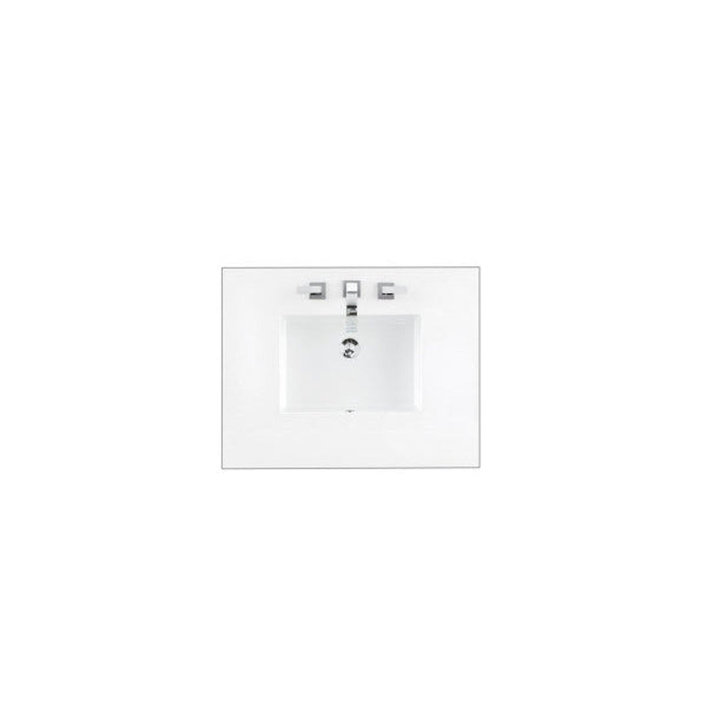 James Martin 30" x 24" Single Classic White Quartz Bathroom Vanity Top With Rectangular Ceramic Sink