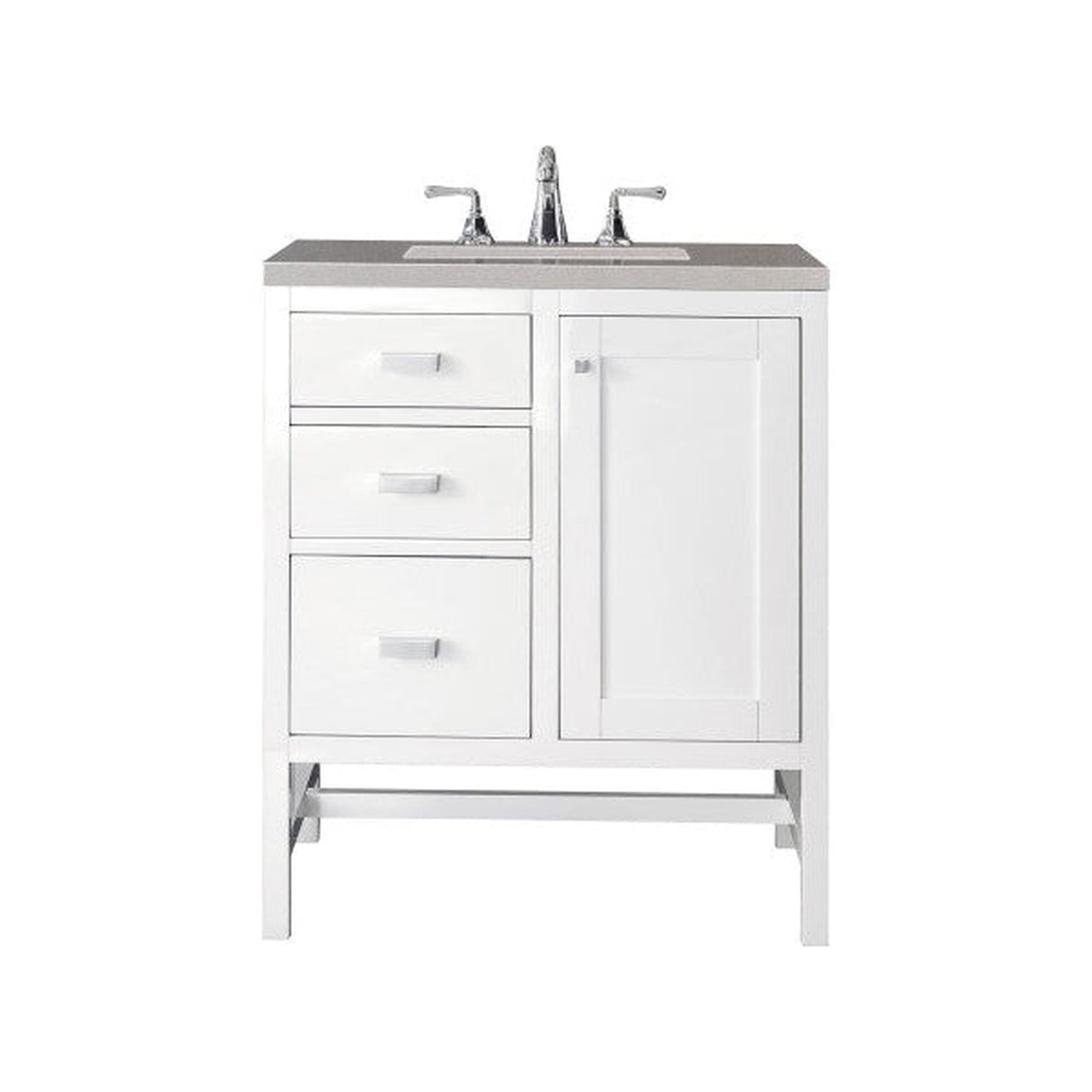 James Martin Addison 30" Single Glossy White Bathroom Vanity With 1" Gray Expo Quartz Top and Rectangular Ceramic Sink