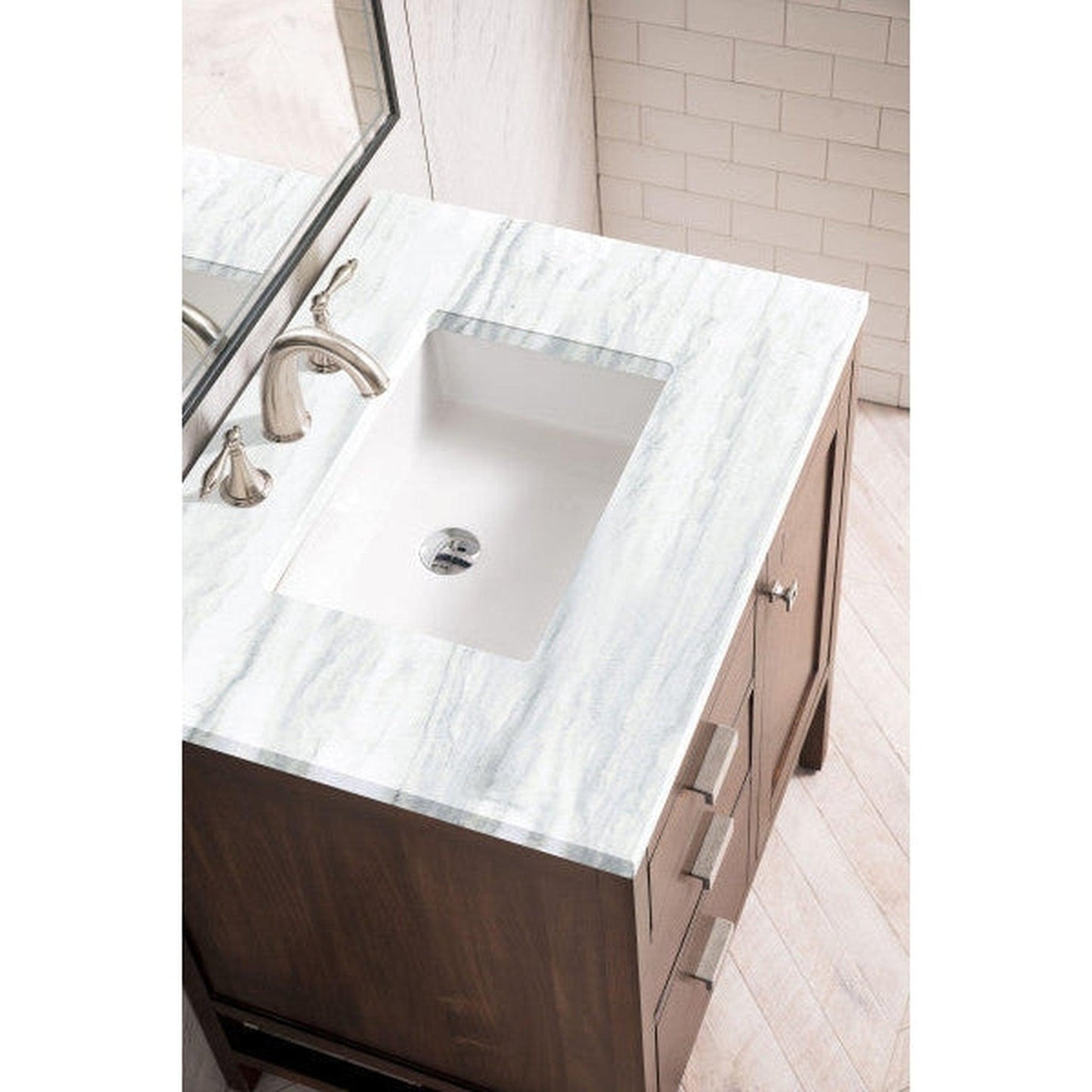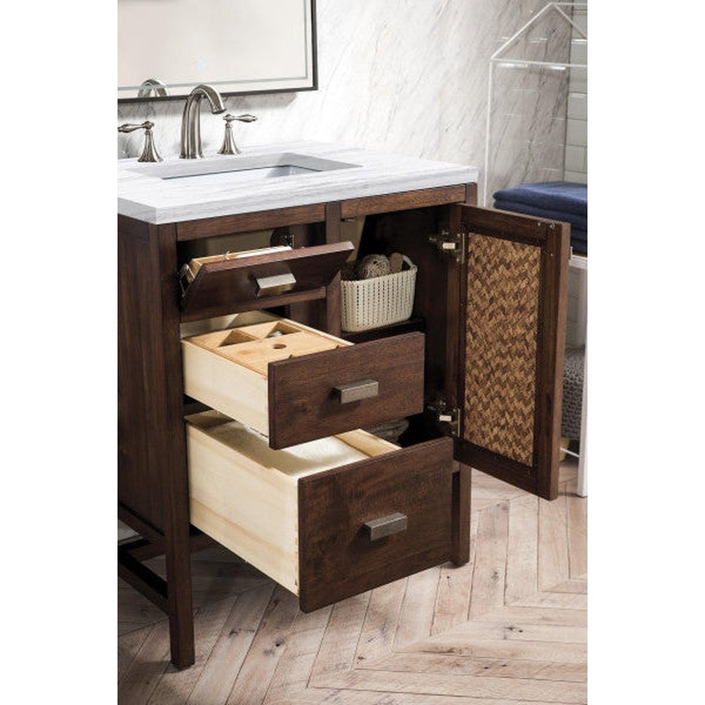 James Martin Addison 30" Single Mid Century Acacia Bathroom Vanity With 1" Arctic Fall Solid Surface Top and Rectangular Ceramic Sink
