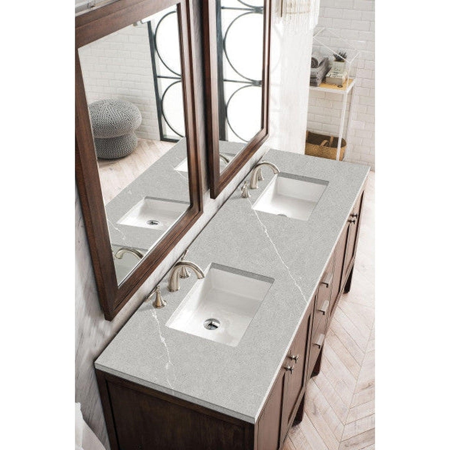 James Martin Addison 72" Double Mid Century Acacia Bathroom Vanity With 1" Eternal Serena Quartz Top and Rectangular Ceramic Sink