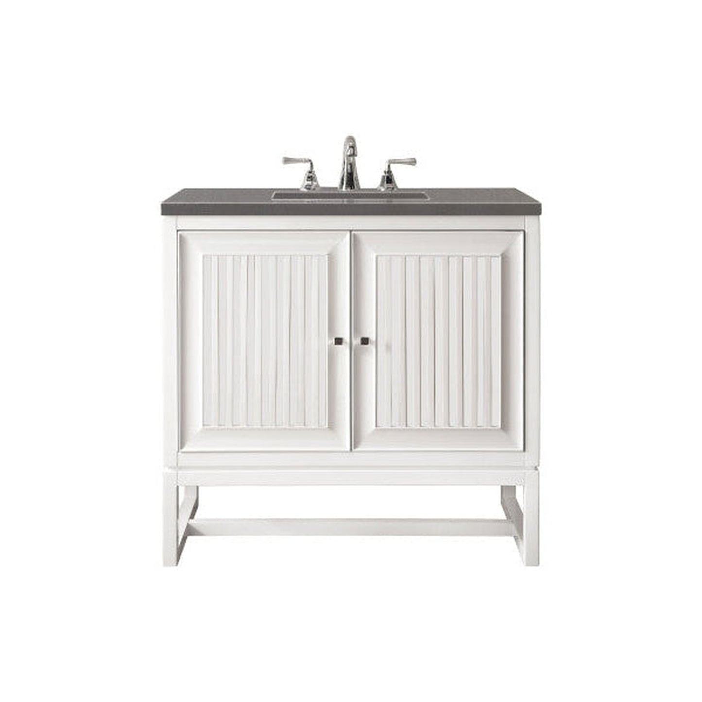 James Martin Athens 30" Single Glossy White Bathroom Vanity With 1" Gray Expo Quartz Top and Rectangular Ceramic Sink