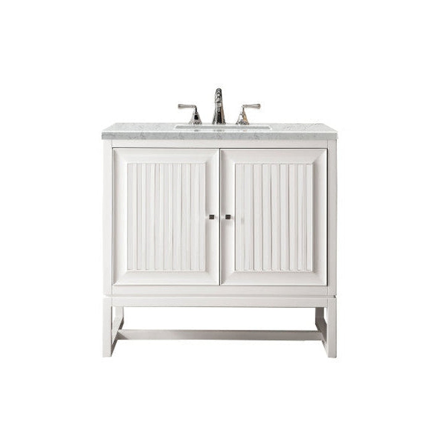 James Martin Athens 36" Single Glossy White Bathroom Vanity With 1" Eternal Jasmine Pearl Quartz Top and Rectangular Ceramic Sink