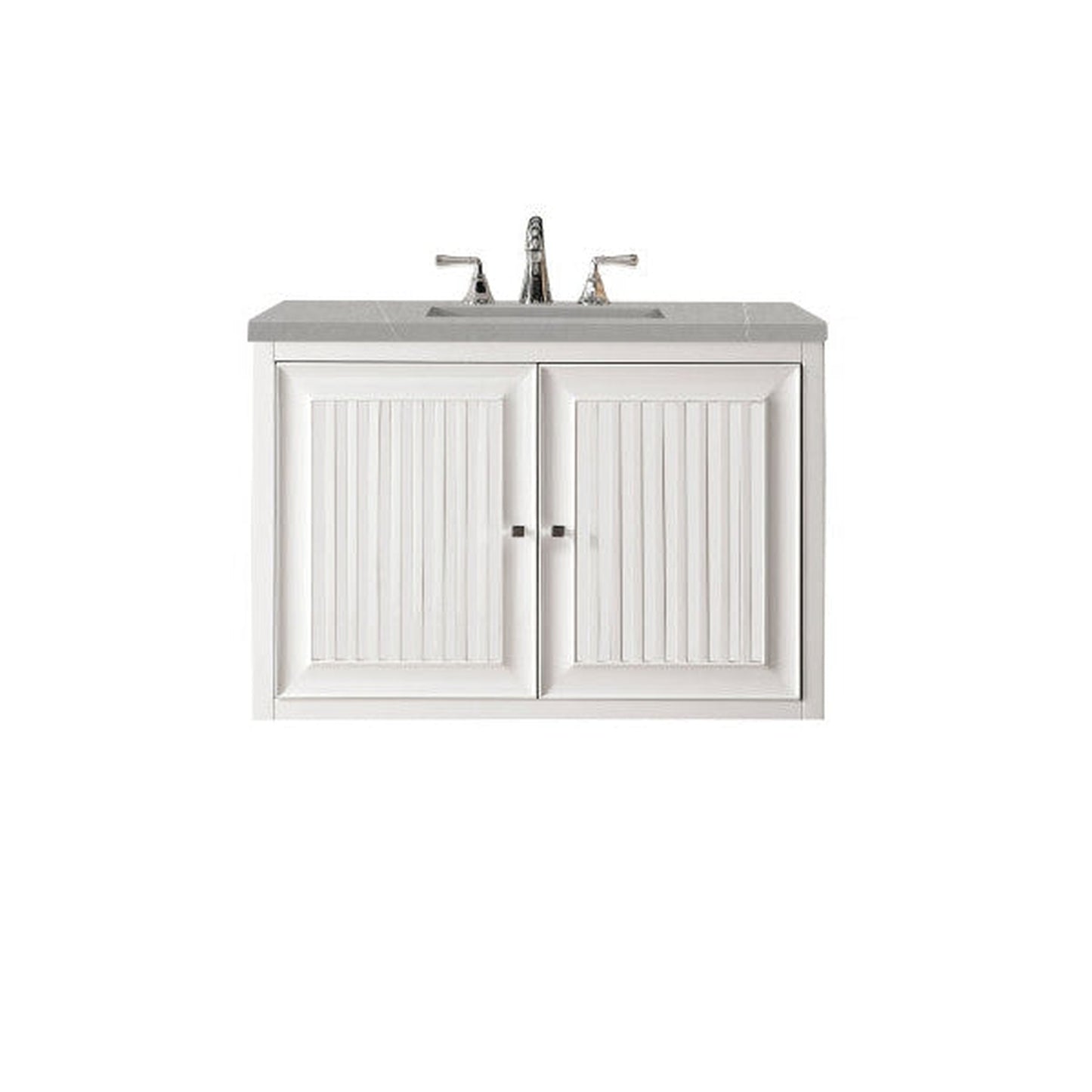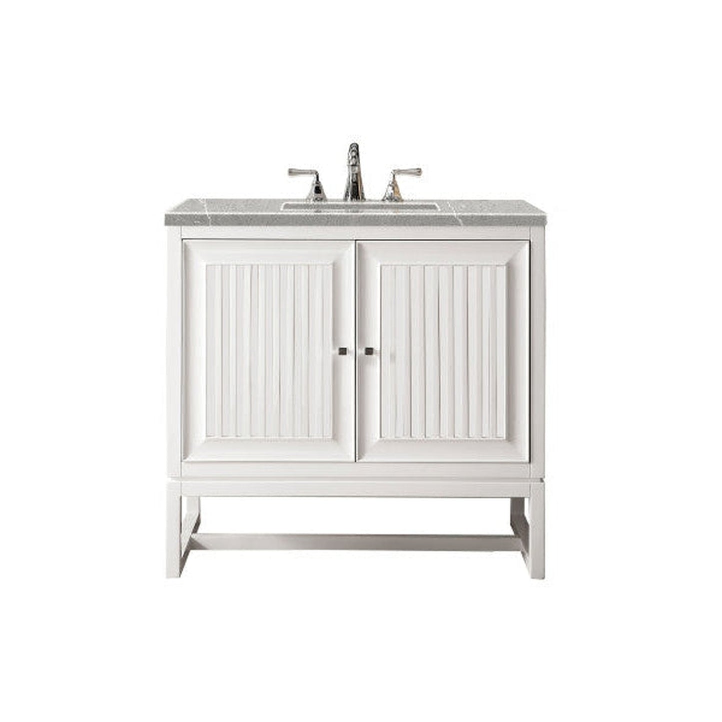 James Martin Athens 36" Single Glossy White Bathroom Vanity With 1" Eternal Serena Quartz Top and Rectangular Ceramic Sink