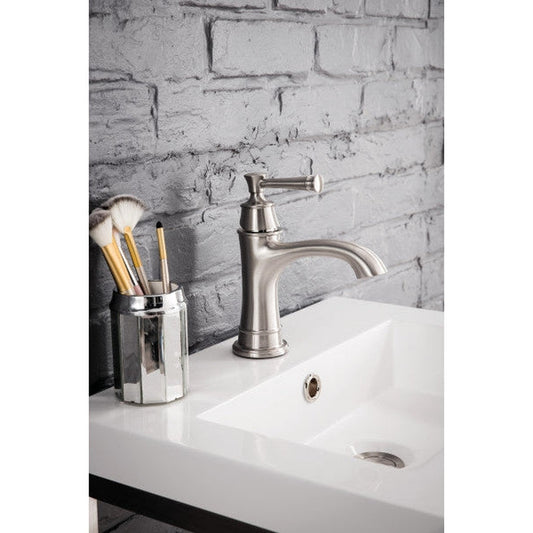 James Martin Boston 20" Single Brushed Nickel Stainless Steel Console Sink With White Glossy Composite Countertop