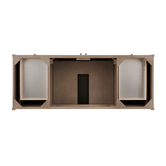 The Chicago 60" Whitewashed Walnut vanity by James Martin Vanities is a wall-mount optional cabinet with mounting brackets and chrome finish legs. This cabinet features tip out drawers for added storage space, soft-close door hinges, and soft-close drawer glides.