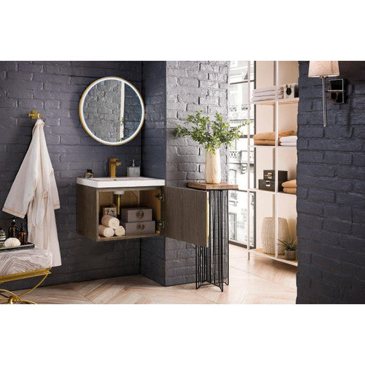 James Martin Columbia 24" Single Ash Gray Bathroom Vanity With 2" Glossy White Composite Countertop