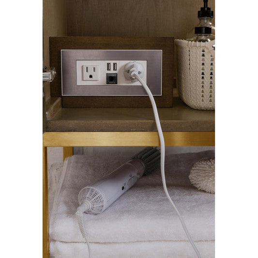 - One solid Bamboo in-drawer organizer and one 120 volt UL Rated electrical component with two electrical and two USB (2.0) outlets