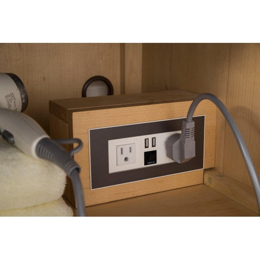 - One solid Bamboo in-drawer organizer and one 120 volt UL Rated electrical component with two electrical and two USB (2.0) outlets