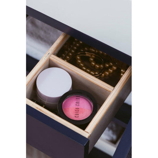 - Drawer bottoms are lined with our signature brushed aluminum laminate