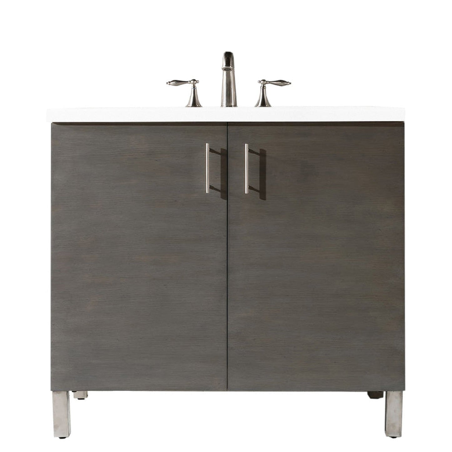 James Martin Metropolitan 36" Single Silver Oak Bathroom Vanity With 1" Classic White Quartz Top and Rectangular Ceramic Sink