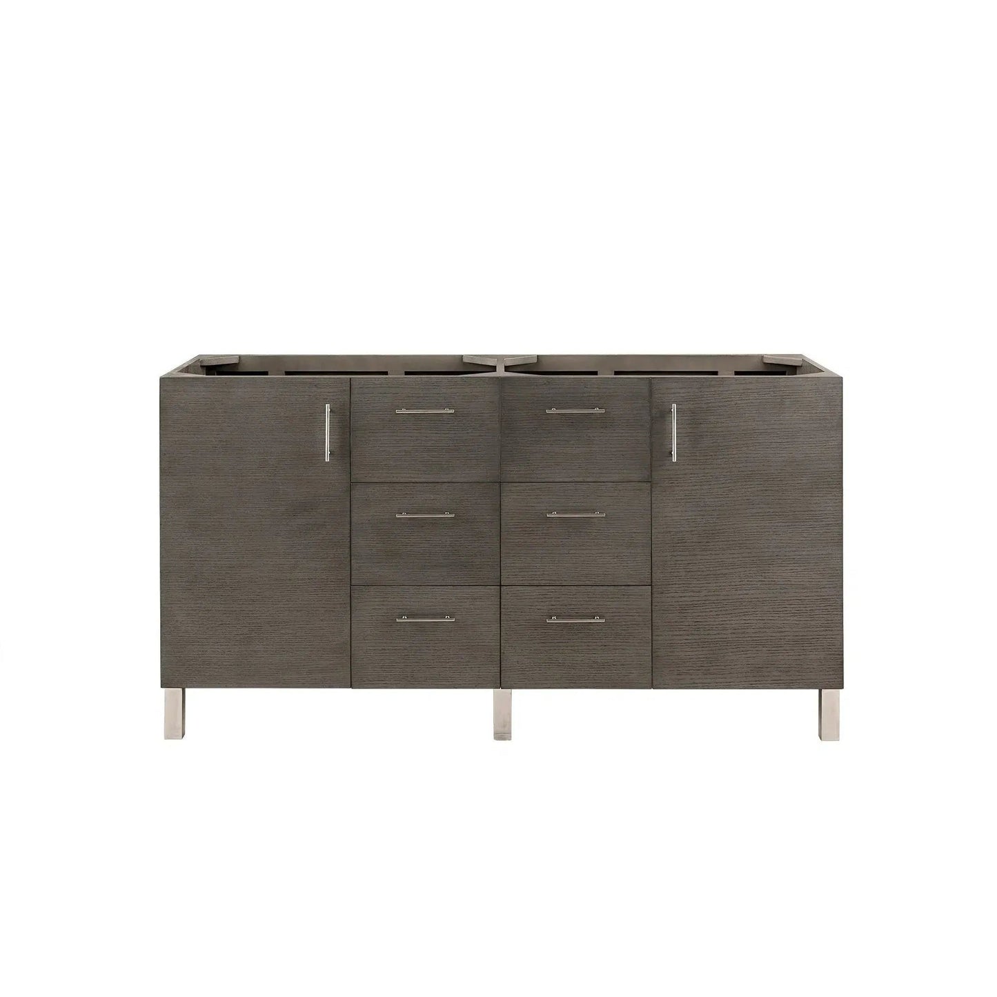 James Martin Metropolitan 60" Double Silver Oak Bathroom Vanity With 1" Arctic Fall Solid Surface Top and Rectangular Ceramic Sink