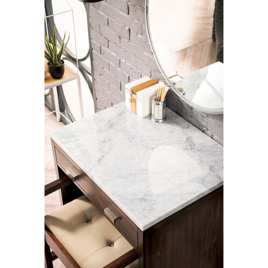 James Martin Vanities Addison 30" Mid Century Acacia Free-standing Makeup Countertop With 3cm Carrara Marble Top