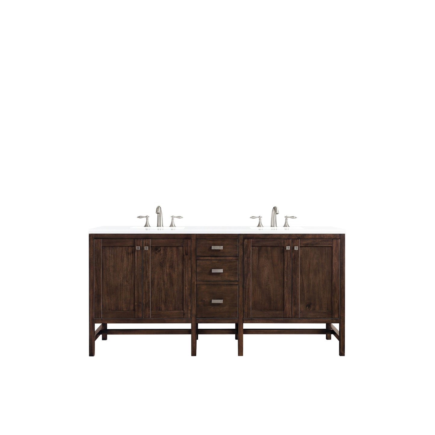 James Martin Vanities Addison 72" Mid Century Acacia Double Vanity Cabinet With 3cm White Zeus Quartz Top
