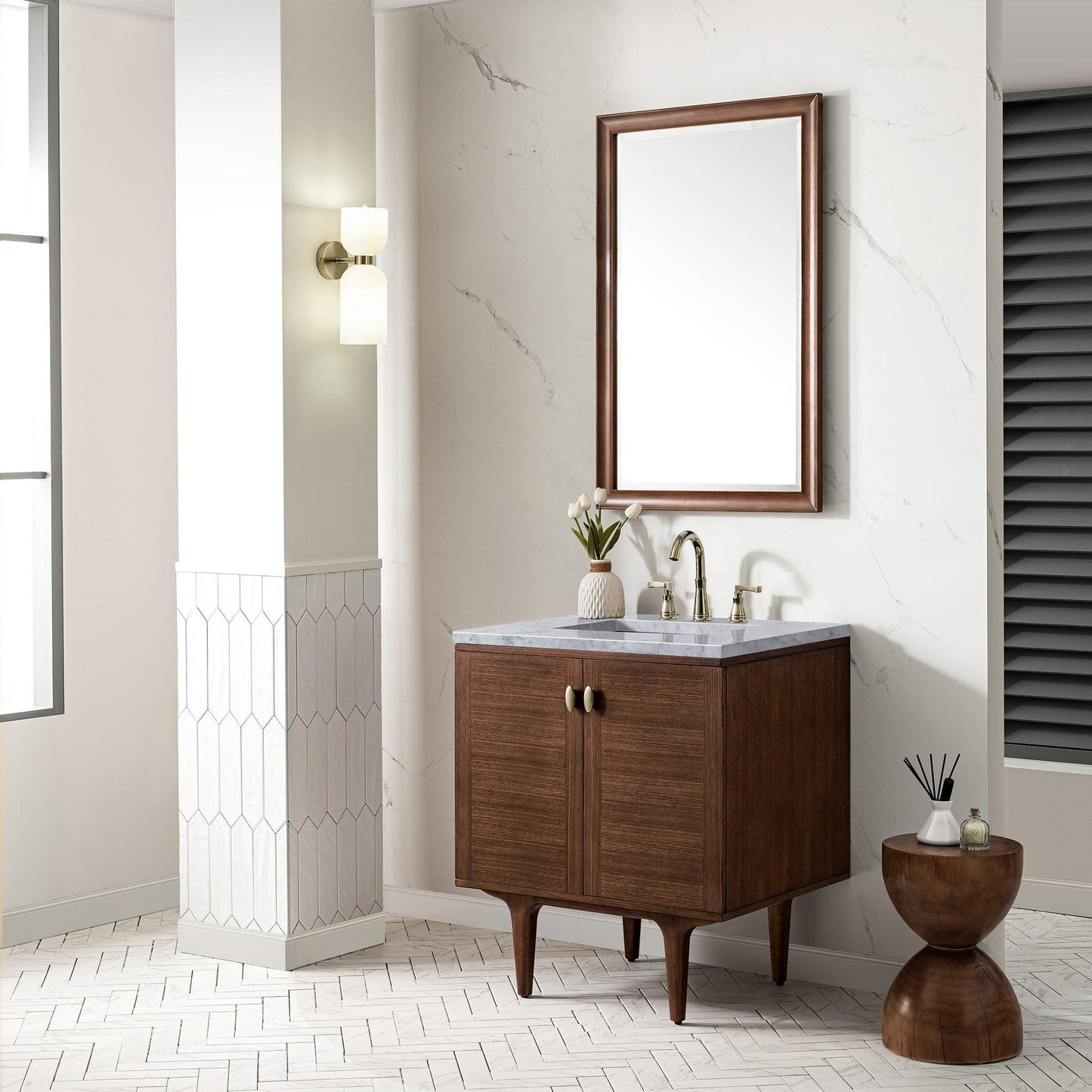 James Martin Vanities Amberly 30" Mid-Century Walnut Single Vanity With 3cm Carrara Marble Top
