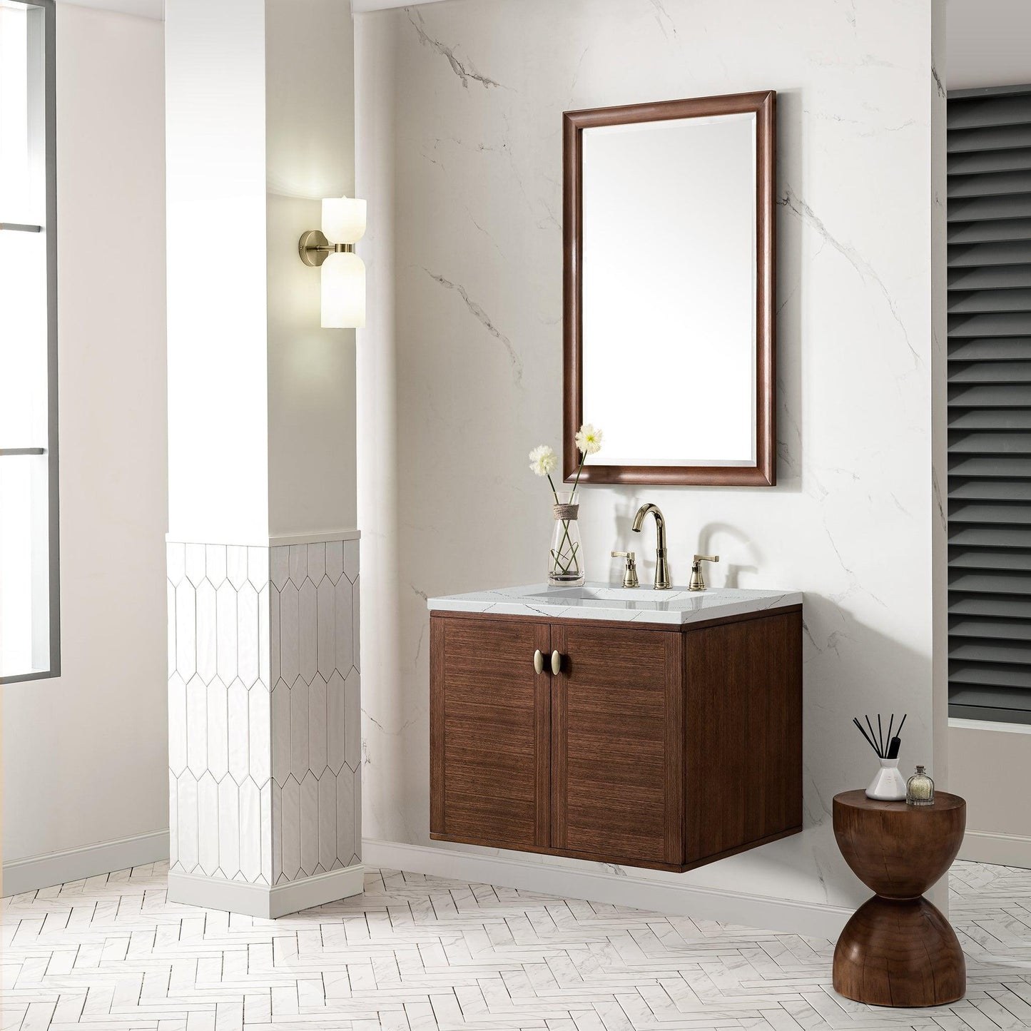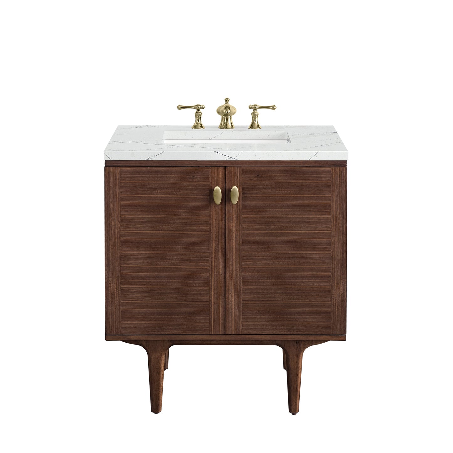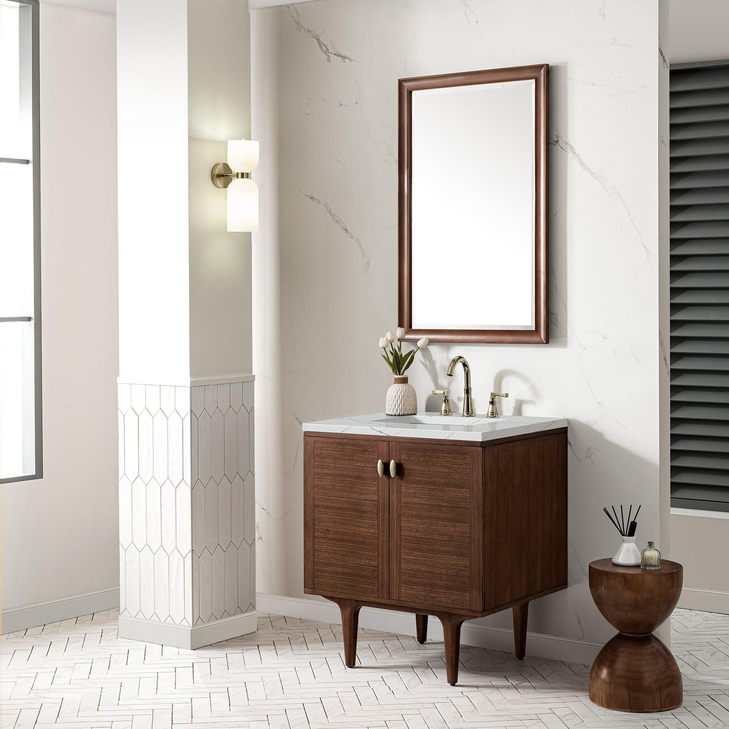 James Martin Vanities Amberly 30" Mid-Century Walnut Single Vanity With 3cm Ethereal Noctis Top