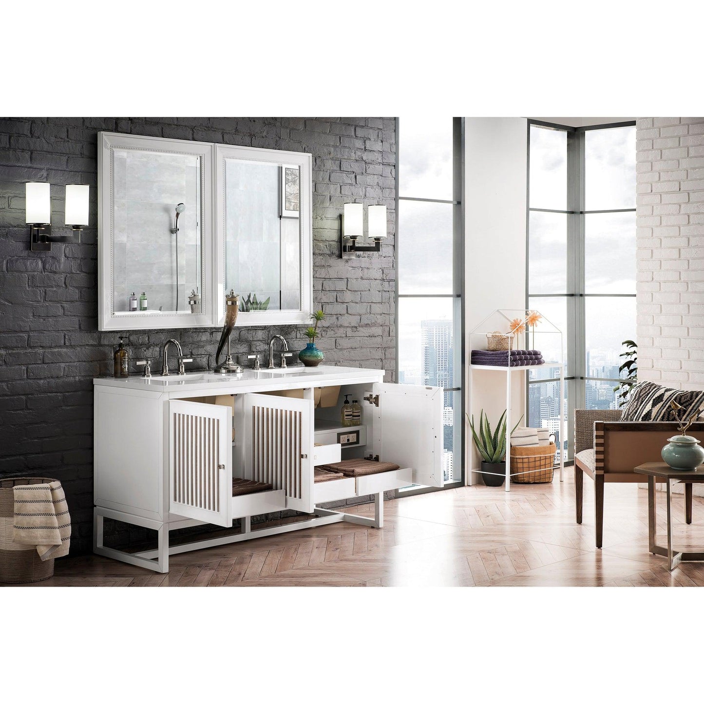 - The Athens bath vanity by James Martin Vanities measures 48.0 in. W x 23.5 in. D x 34.5 in. H, providing ample storage space for your bath space