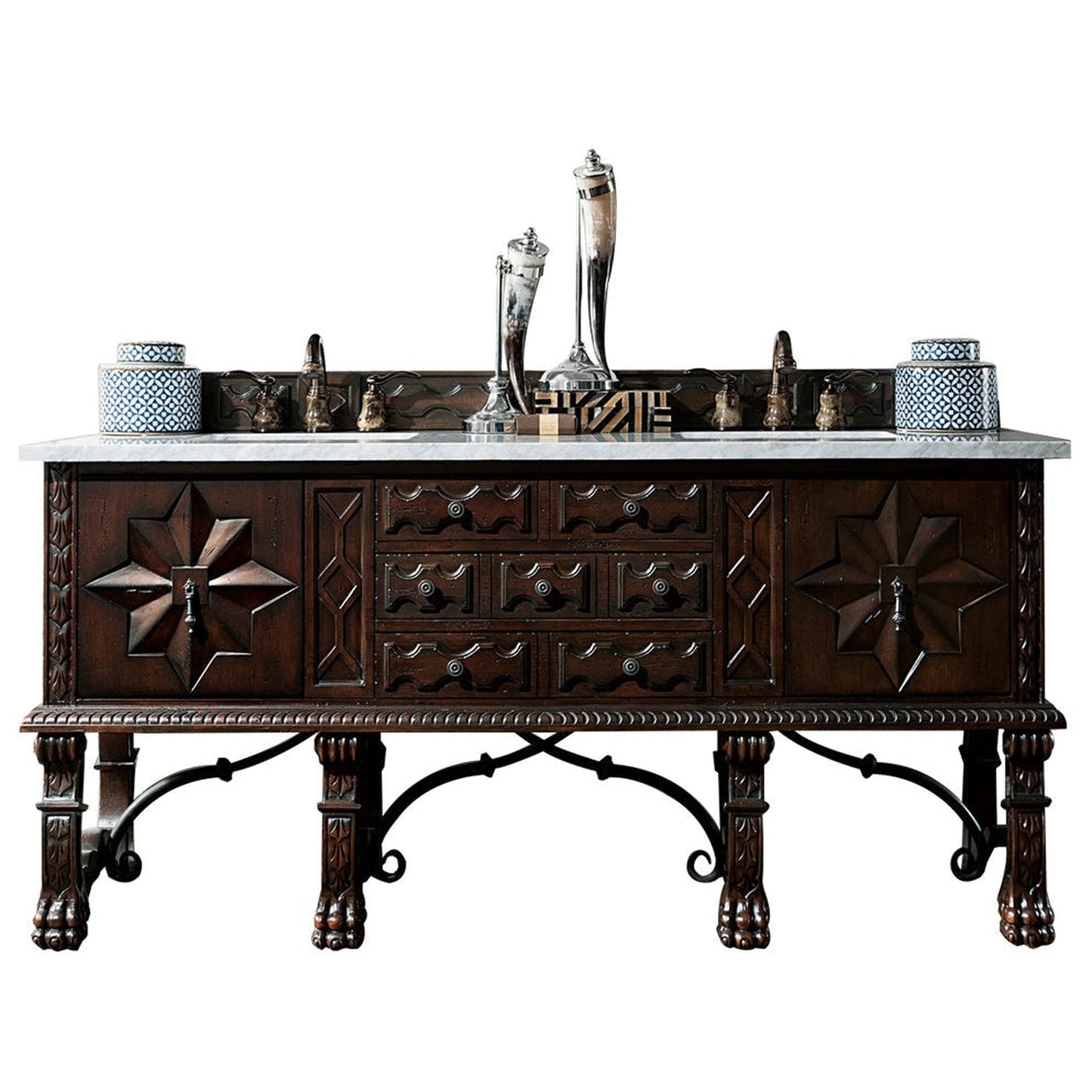 James Martin Vanities Balmoral 72" Antique Walnut Double Vanity Cabinet With 3cm Carrara Marble Top