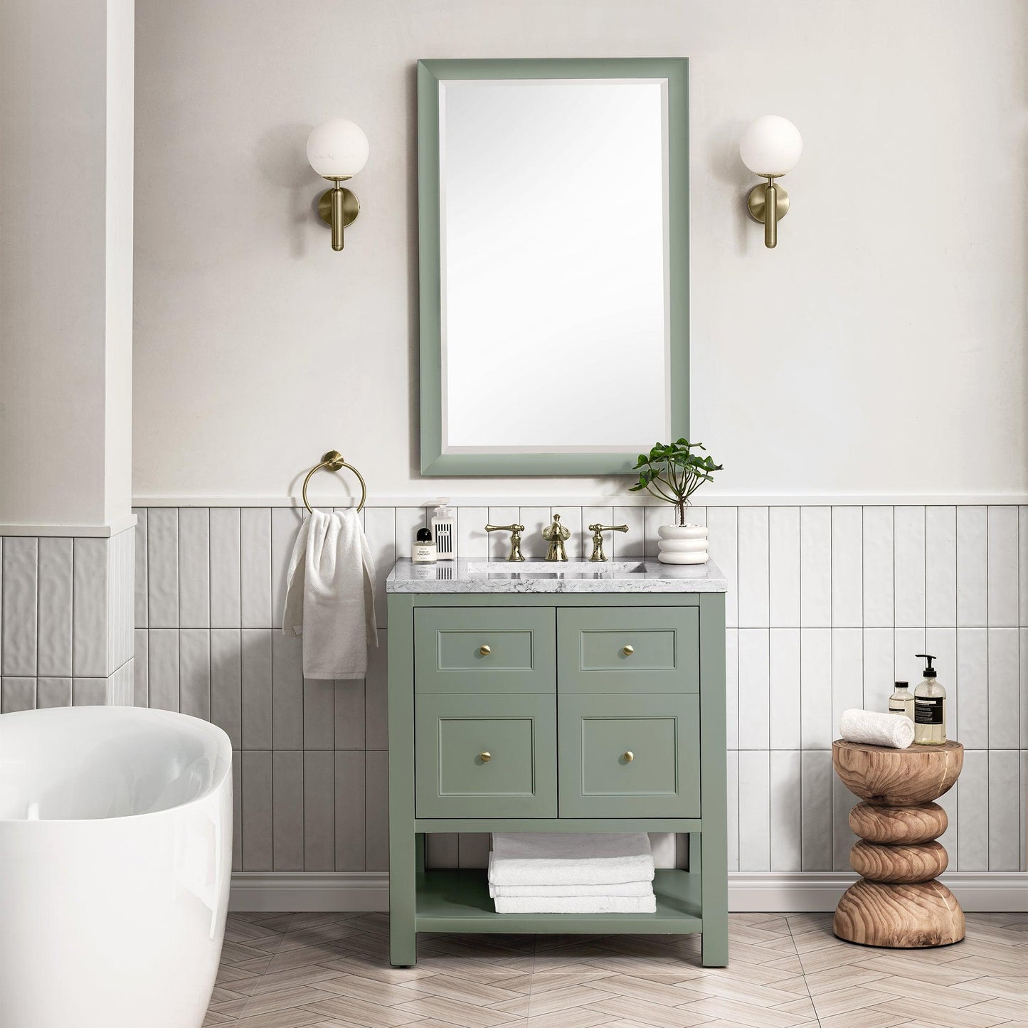 James Martin Vanities Breckenridge 30" Smokey Celadon Single Vanity With 3cm Arctic Fall Top