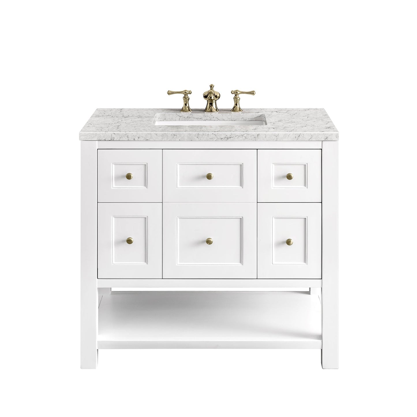James Martin Vanities Breckenridge 36" Bright White Single Vanity With 3cm Eternal Jasmine Pearl Top