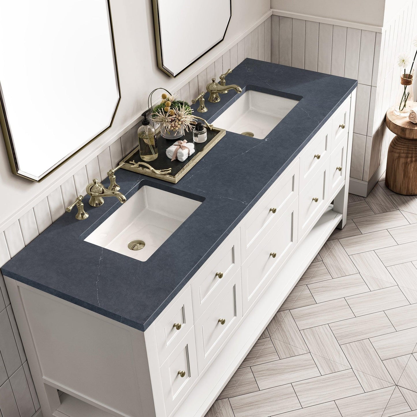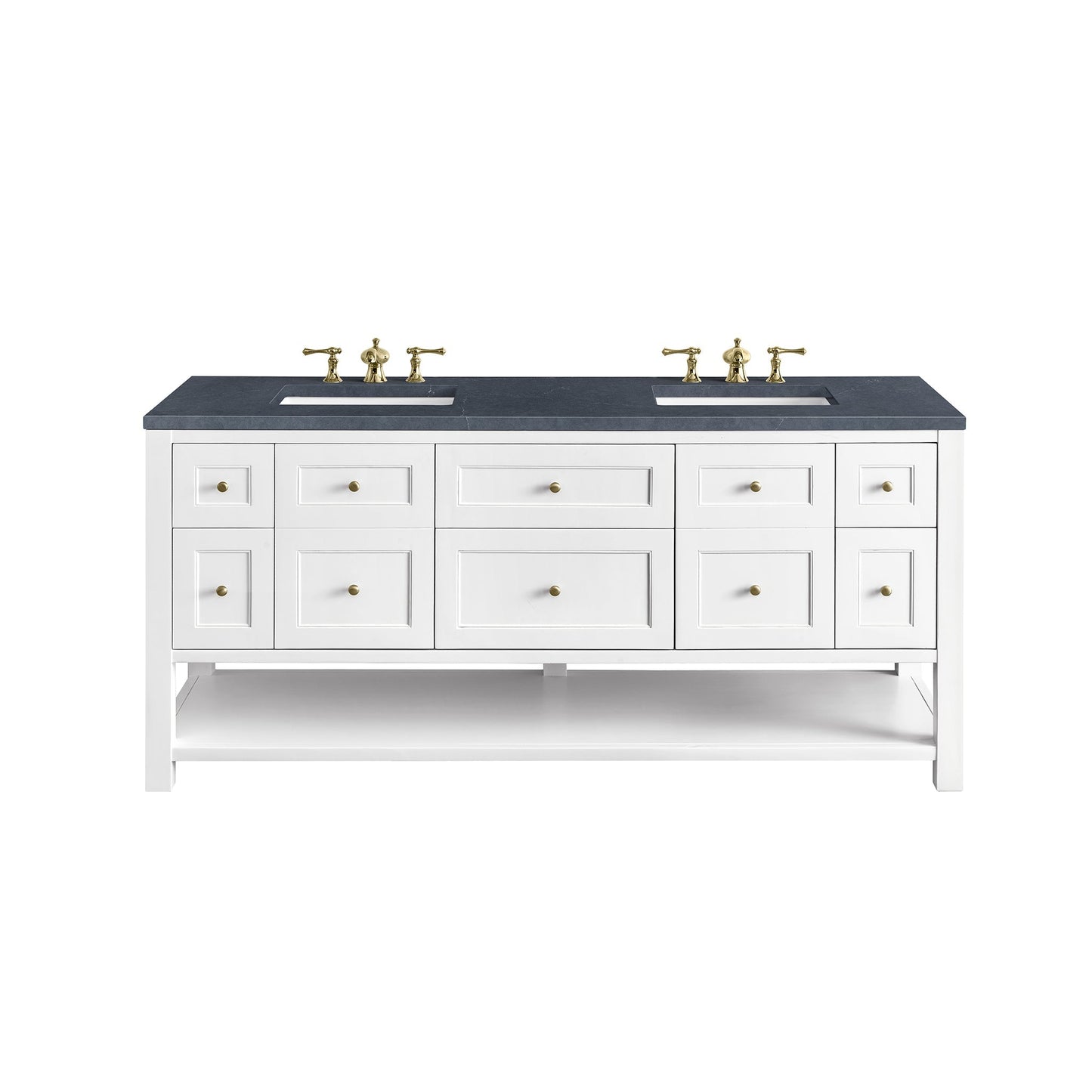 James Martin Vanities Breckenridge 72" Bright White Double Vanity With 3cm Charcoal Soapstone Top