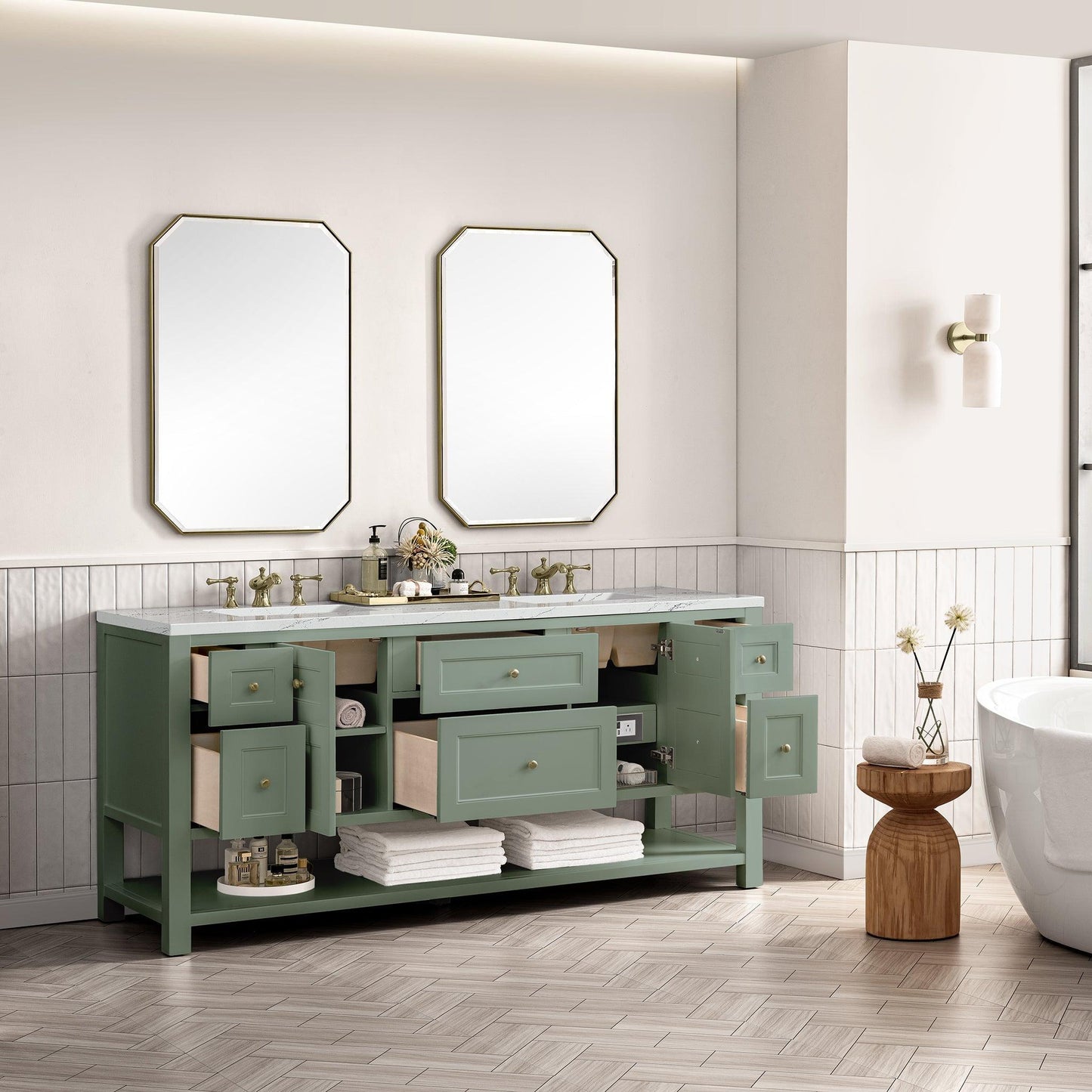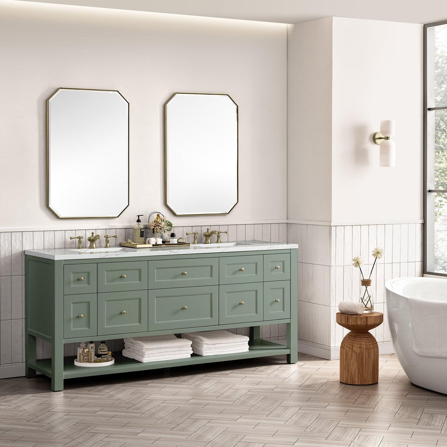 James Martin Vanities Breckenridge 72" Smokey Celadon Double Vanity With 3cm Ethereal Noctis Top